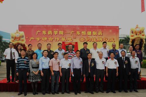 2012年11月15日,在市、區各級領(lǐng)導、嘉賓見(jiàn)證下,我公司舉辦了與廣東藥學(xué)院共建“產(chǎn)學(xué)研合作基地”的簽約掛牌儀式。